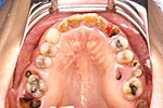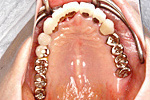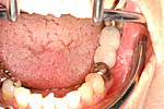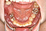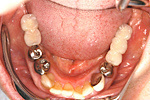 ① 右上奥歯がありません。普通なら取り外しの顎つき入れ歯しか入りません。