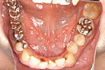① 右下の奥歯がありません。奥歯は食物を噛むのにとても大切な歯です。