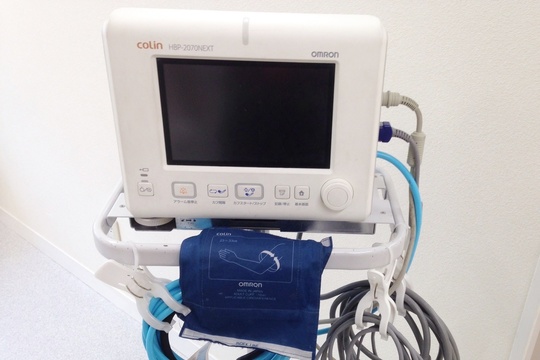 心電図をモニターに映して確認する機器。手術中は患者さまの全身状態にも配慮しています。
