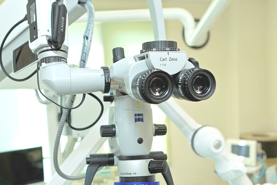 肉眼で見えない部分もハッキリと見える、歯科治療で使う手術用顕微鏡です。より精密・正確な治療が可能になります。