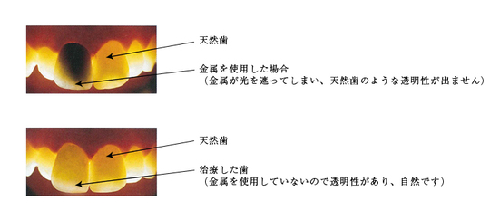 土台に金属を使うと、歯ぐきが黒ずむ事があります。